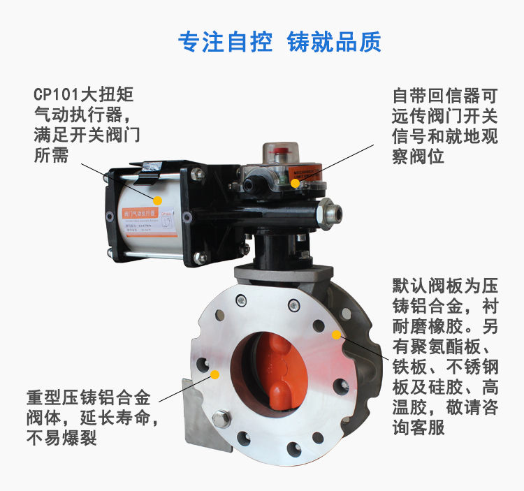 氣動粉體蝴蝶閥主要用于開關料箱,料斗以及裝有粉狀或是顆粒狀物料的筒倉。可應用于所有粉狀及顆粒物料的處理,閥門利用物料自身重力進行截流以及氣動傳輸干性物料。可以安裝在料斗、料箱、筒倉、螺旋或其他類型的輸送機的下方,以及連接氣動輸送管道。