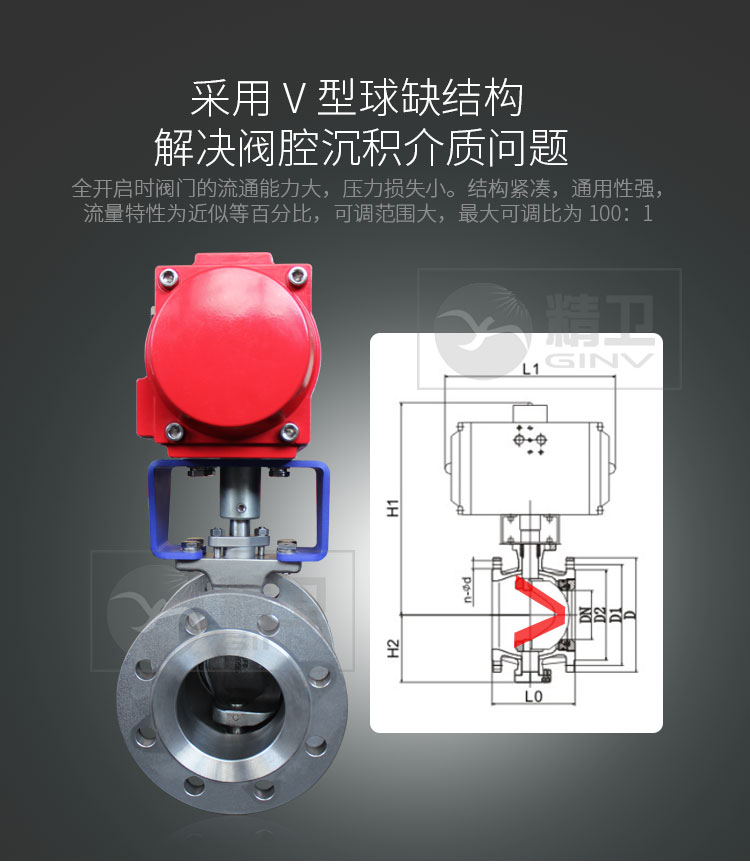 2、具有一個V型閥體,即使在小流量或高粘度介質的情況下,也可在整個量程范圍內,保證控制的性;